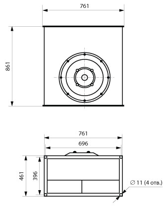 Прямоугольный канальный вентилятор (с назад загнутыми лопатками)