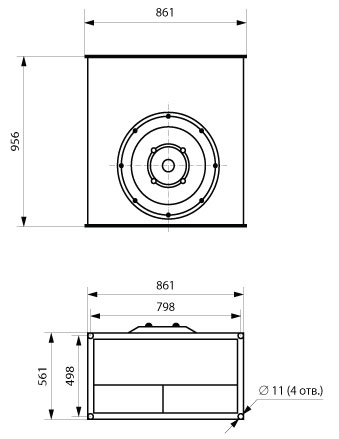 Прямоугольный канальный вентилятор (с назад загнутыми лопатками)