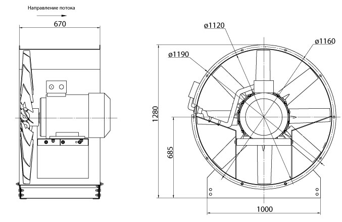 Особенностью вентиляторов является возможность установки лопаток под разными углами, благодаря этому вентилятор с одним диаметром колеса обеспечивает целую область режимов. Вентилятор изготавливается на стойке (исполнение 02).