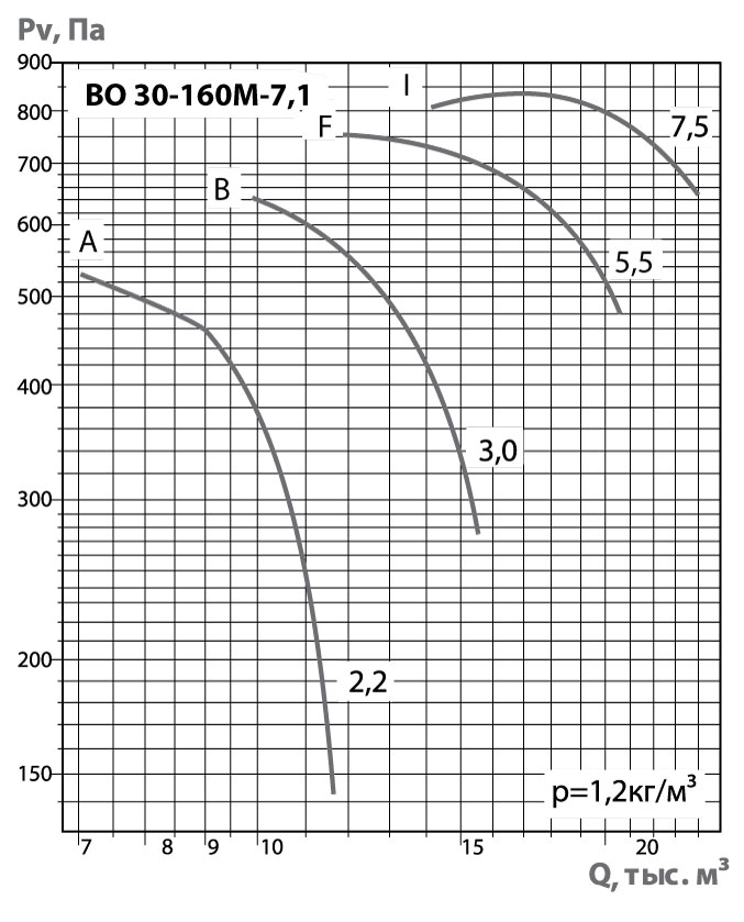 На границах рабочего участка аэродинамической характеристики уровни звуковой мощности на 3 дБ выше уровня звуковой мощности, соответствующего номинальному режиму работы вентилятора.