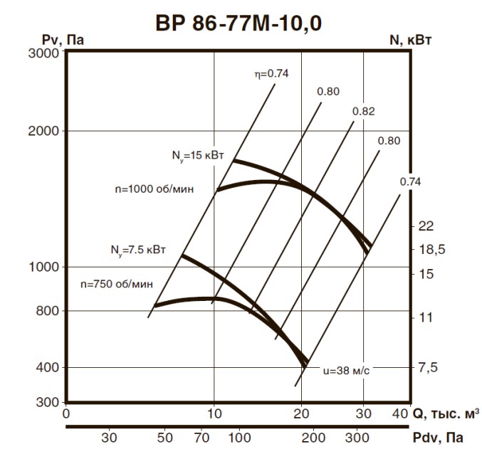 Вентиляторы серии ВР 86-77М представляют собой радиальные вентиляторы одностороннего всасывания с рабочими лопатками, загнутыми назад. Направление вращения — правое и левое. Корпус вентилятора изготовлен из оцинкованной стали. Привод — трехфазный асинхронный электродвигатель. Для защиты от перегрева вентиляторы серии ВР 86-77М снабжены встроенными термодатчиками с выводами для подсоединения устройства защиты двигателя.