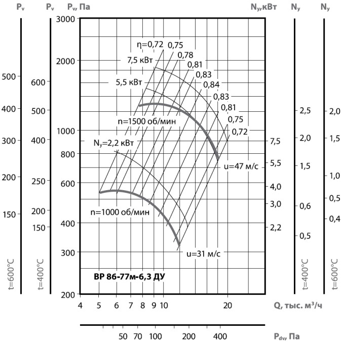 Вентиляторы радиальные ВР 86-77М ДУ для дымоудаления представляют собой вентиляторы одностороннего всасывания с рабочими лопатками, загнутыми назад. Корпус вентилятора изготовлен из оцинкованной стали. Рабочее колесо изготавливается из жаростойкой углеродистой стали - исп. 02 (до 400°С) или жаростойкой углеродистой стали со специальным покрытием - исп. 01 ( до 600°С).