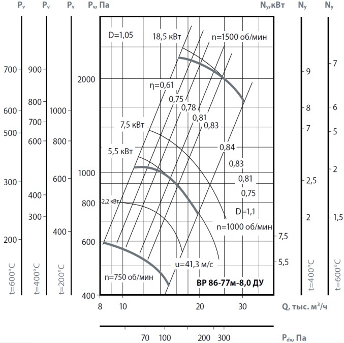Вентиляторы радиальные ВР 86-77М ДУ для дымоудаления представляют собой вентиляторы одностороннего всасывания с рабочими лопатками, загнутыми назад. Корпус вентилятора изготовлен из оцинкованной стали. Рабочее колесо изготавливается из жаростойкой углеродистой стали - исп. 02 (до 400°С) или жаростойкой углеродистой стали со специальным покрытием - исп. 01 ( до 600°С).