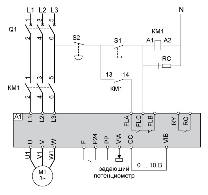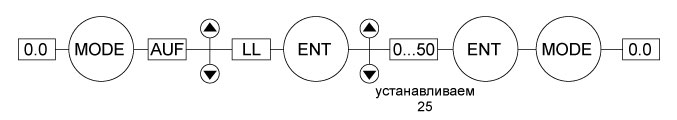 управляющий сигнал 0 ... 10 В при программировании диапазона регулирования от 25 до 50 Гц, сигналу 0 В соответствует частота 25 Гц, а 10 В — частота 50 Гц |