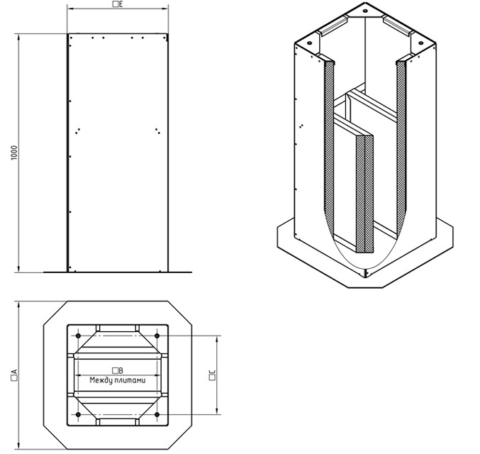 СТм-Ш-ВКМ изготовлен из оцинкованной стали имеет стандартную высоту h= 1000 мм. Внутри СТм-Ш-ВКМ установлены специальные продольные пластины.