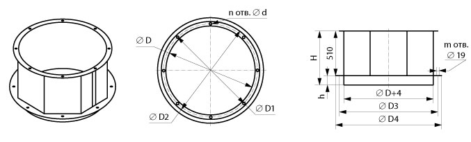 Стаканы СТс предназначены для монтажа крышных вентиляторов ВКР общего назначения и вентиляторов дымоудаления ВКР ДУ.